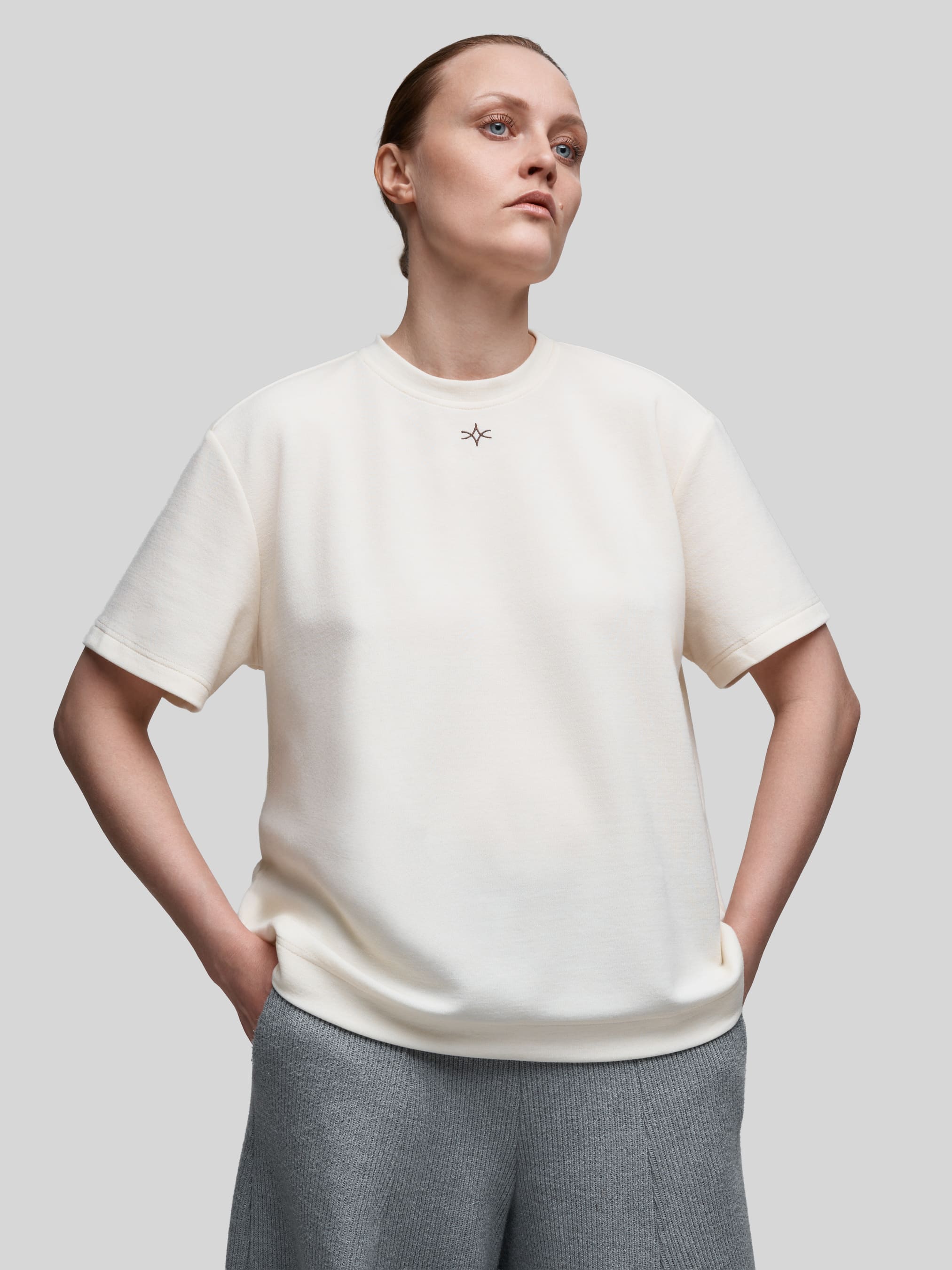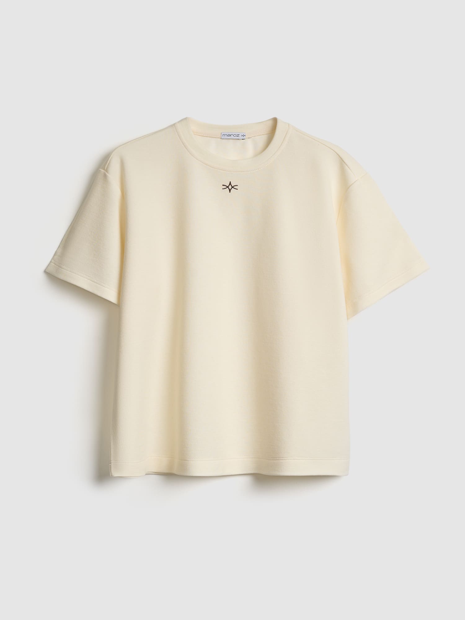Мягкая футболка из качественного трикотажа — идеальная основа для любого образа. Свободный крой создает ощущение легкости и комфорта, а молочный оттенок легко сочетается с любым гардеробом.
