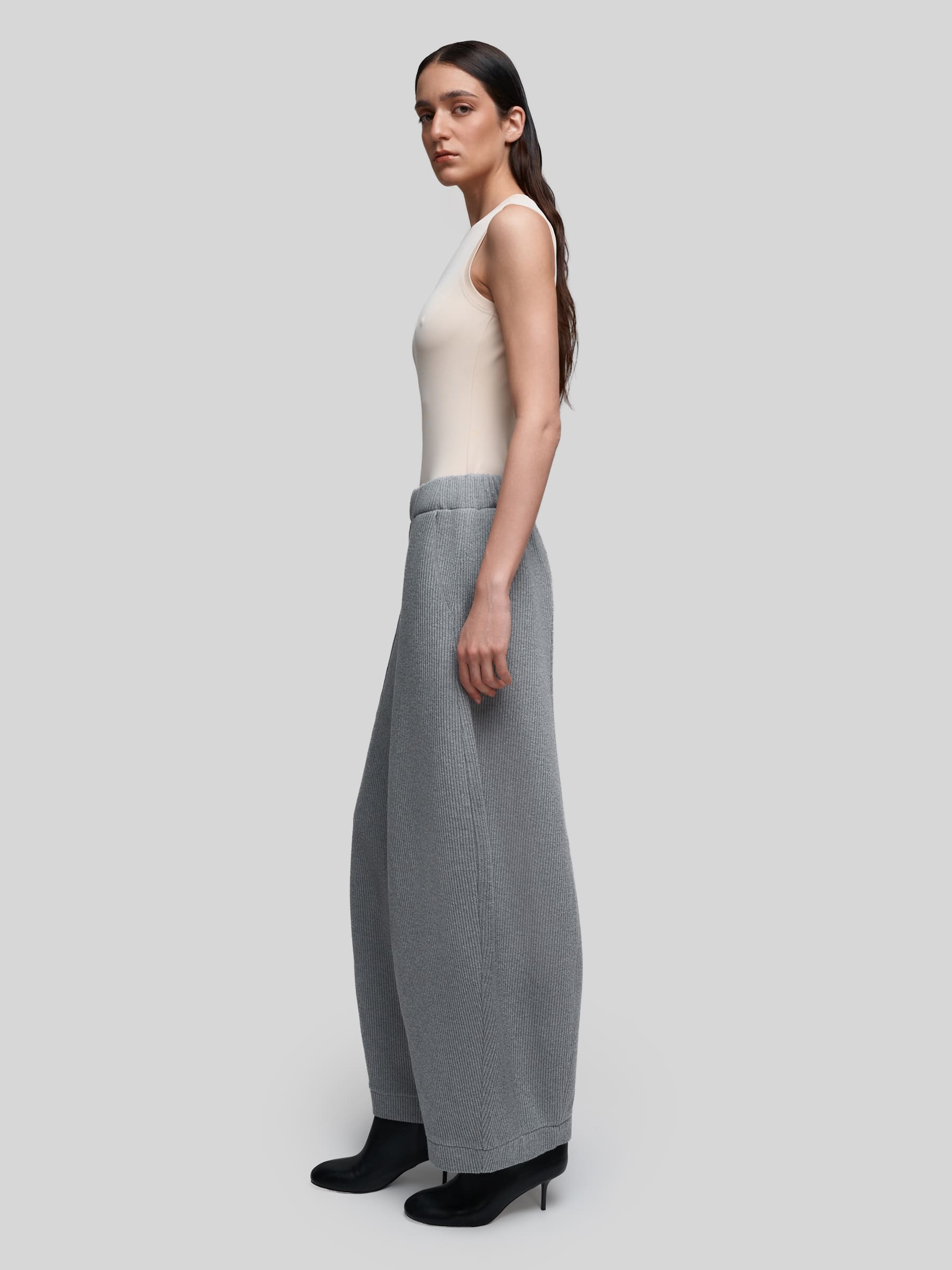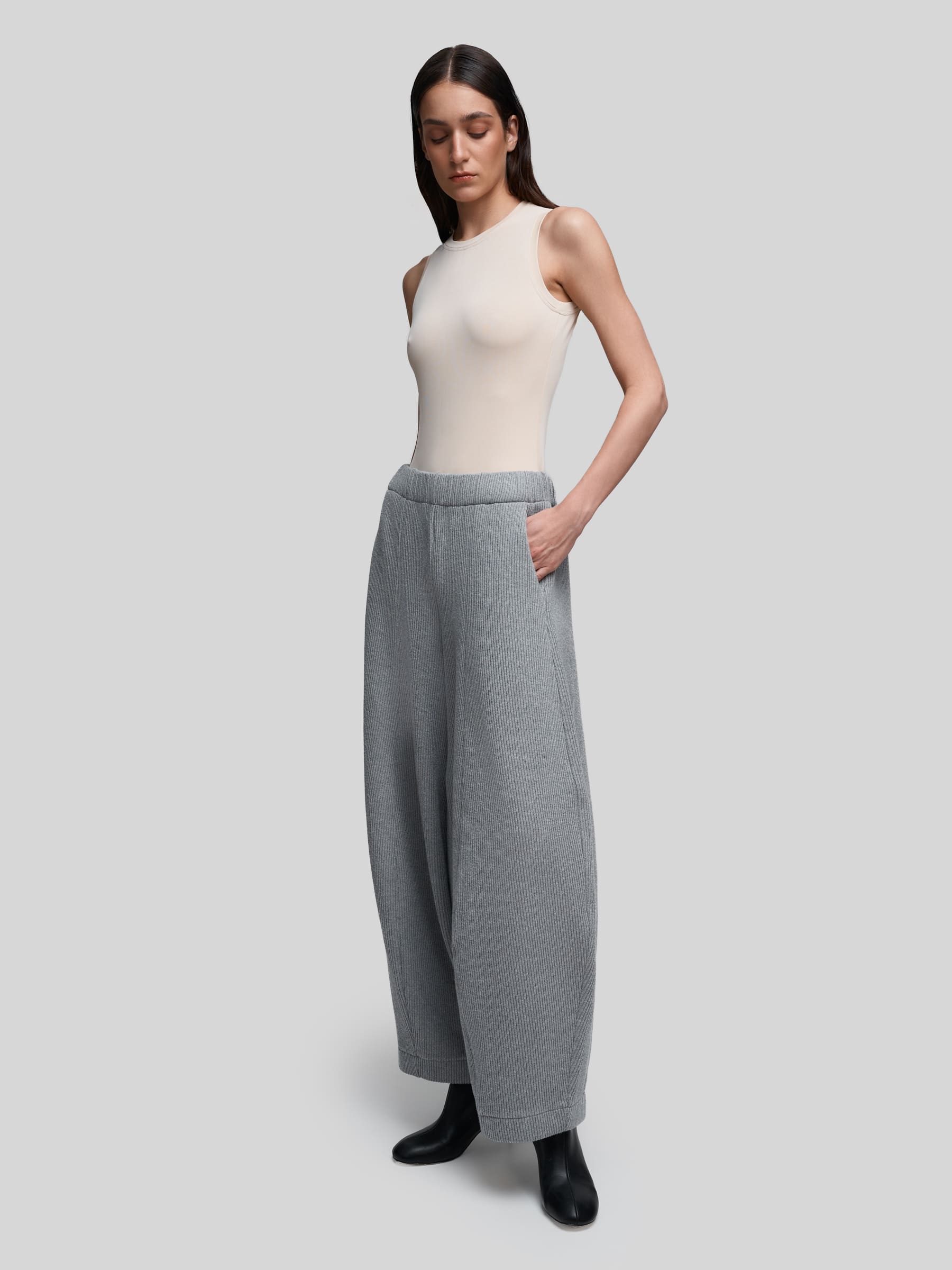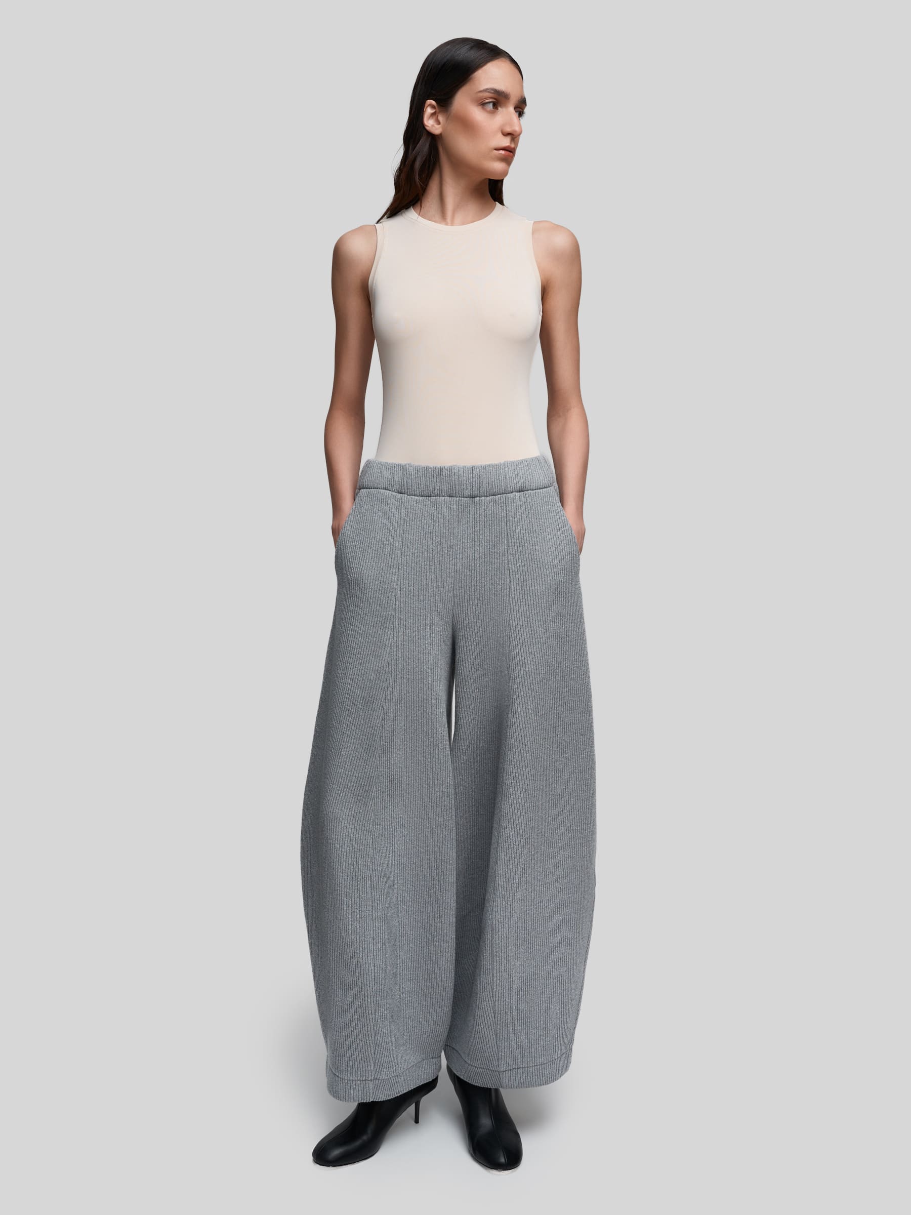 Широкие женские брюки из мягкого плотного трикотажа - идеальный выбор для тех, кто ценит комфорт без ущерба эстетике. Необычный крой, созданный за счет вертикальных рельефов, и приятный в носке материал, из которого они выполнены делают их must-have для базового гардероба.