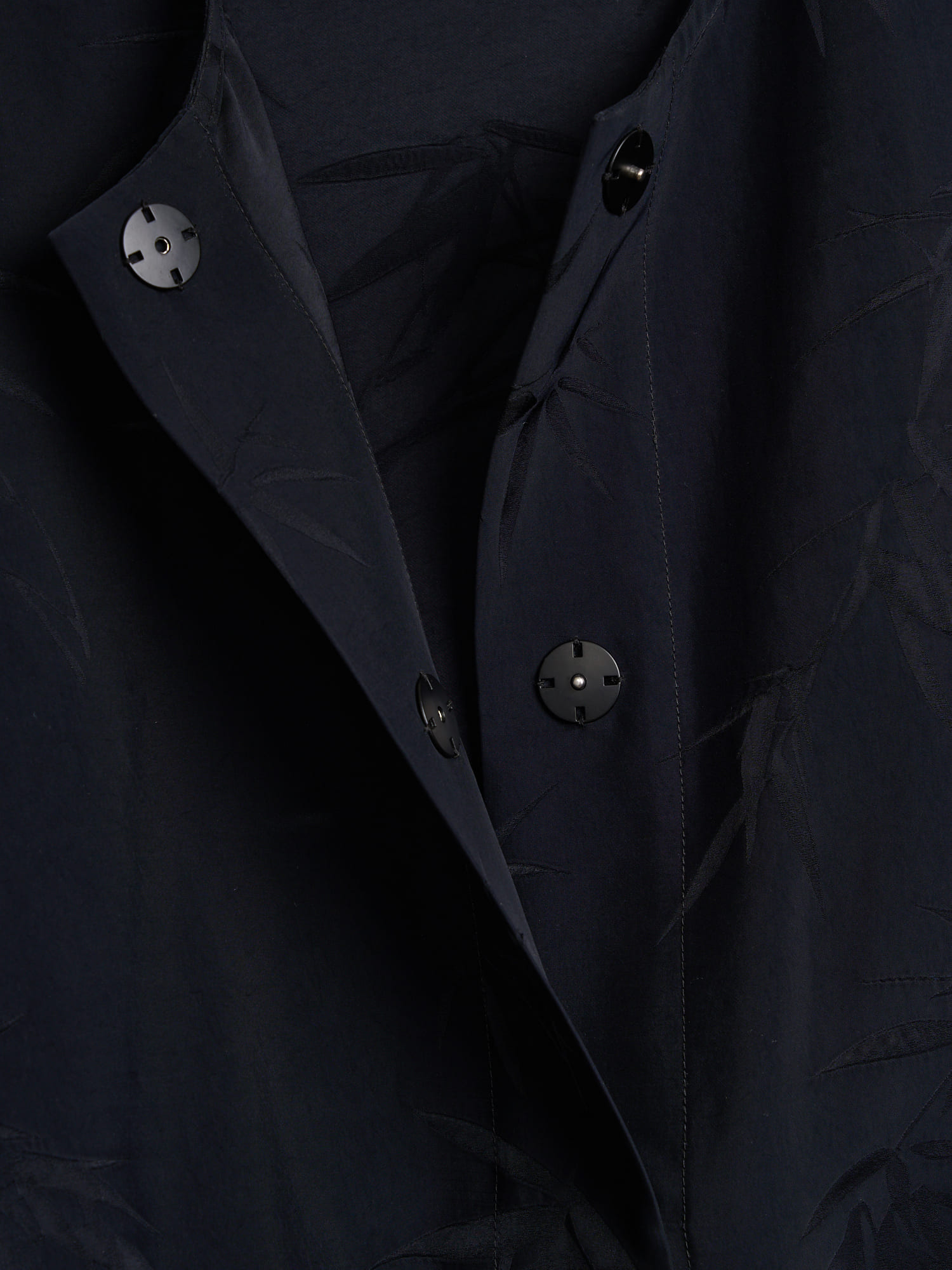 Лёгкий бомбер О-силуэта из струящейся ткани чёрного цвета с принтом «Бамбук». Модель с широкими рукавами и спущенным плечом создаёт расслабленный, но стильный силуэт. Можно носить как самостоятельную блузку или использовать для многослойных образов.