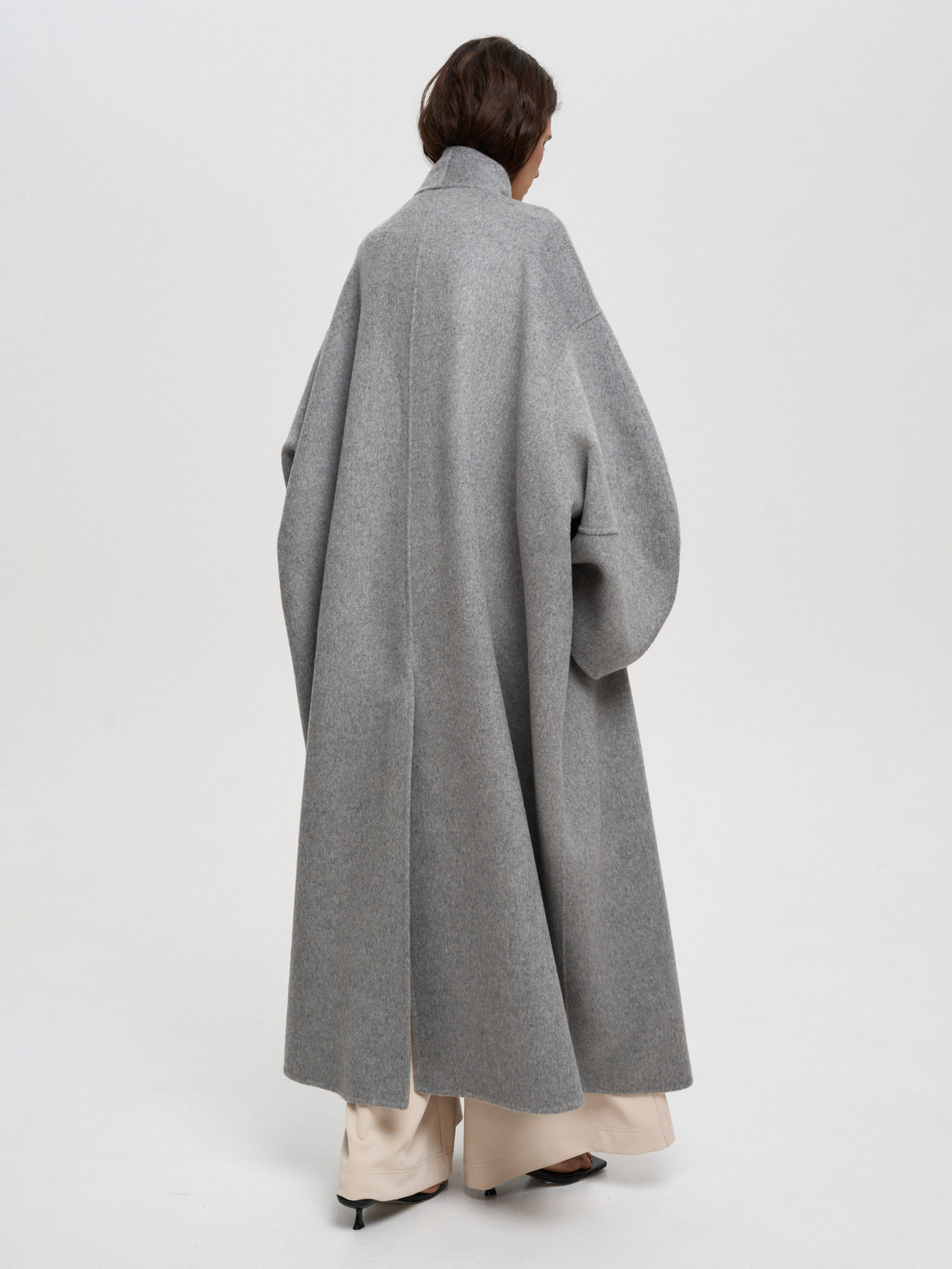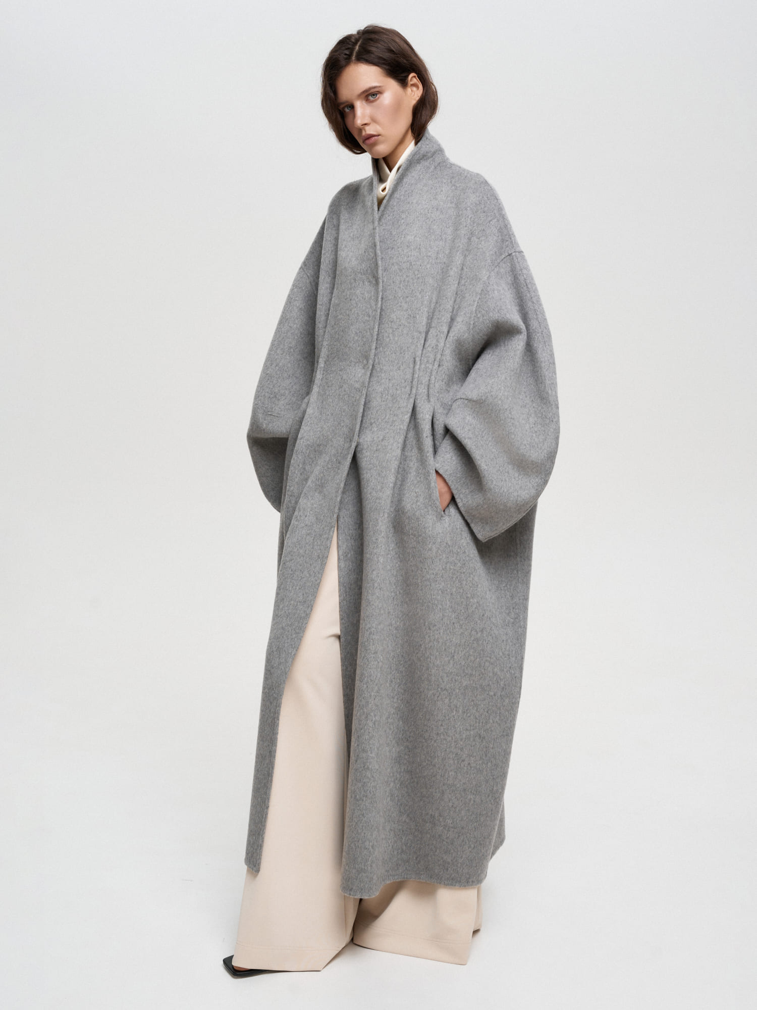 Пальто из плотного драпа – воплощение утонченной роскоши и современного дизайна. Смесь премиальной шерсти и кашемира мягко обволакивает, а свободный О-силуэт создает стильный oversize-образ. Фирменные объемные рукава создают смелый акцент и подчеркивают оригинальность модели.
